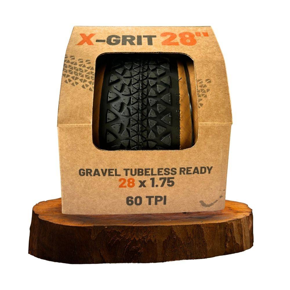 Hartex is a homegrown Indian brand producing high-quality tyres for the world. Presenting Hartex X-Grit for gravel riding. The knobby tooth on the tyre lends a good hold over loose mud, sand and soil. X-grit comes in 40c and 47c widths. X-Grit comes with an aramid foldable bead, is tubeless-ready and skin wall type. X-Grit goes well with the gravel style, with a Tan wall!